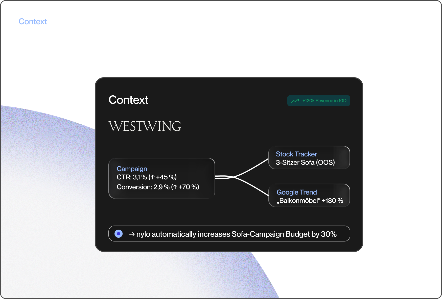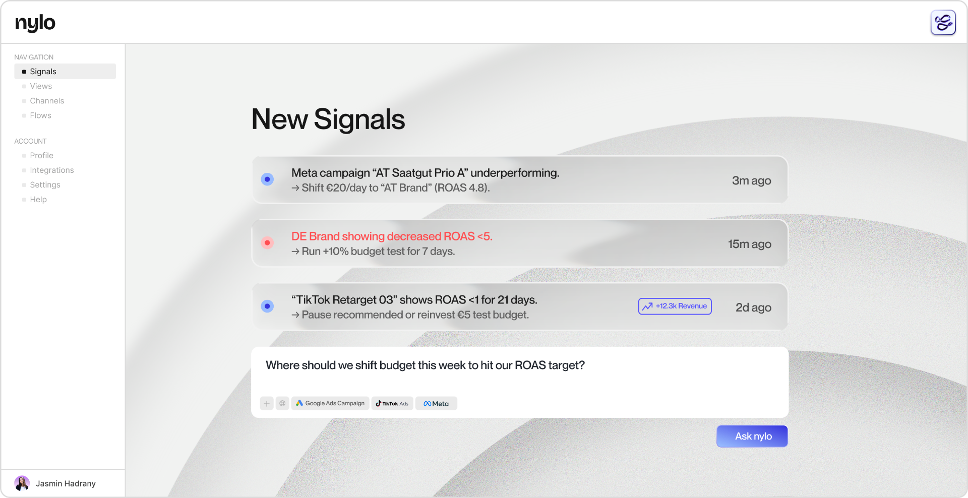 Nylo analyzes all your marketing data in real time and tells you exactly where to cut waste and where to scale.